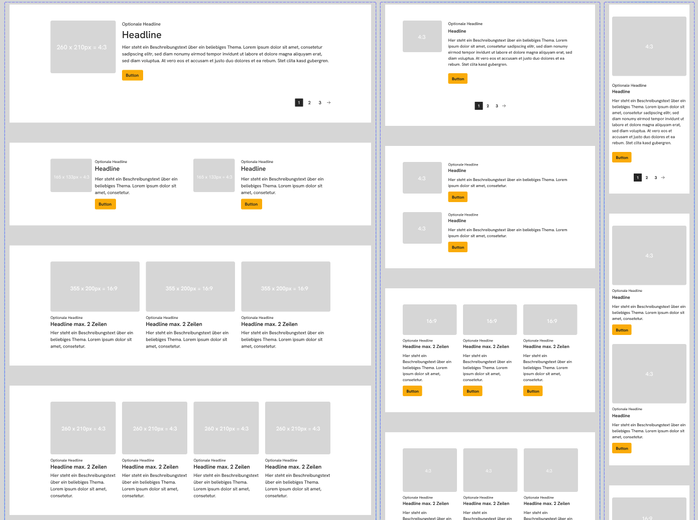 Teaser-Elemente gibt es in mehreren Varianten jeweils statisch oder als Slider. In Containern platziert, können sie unterschiedliche Hintergründe haben.